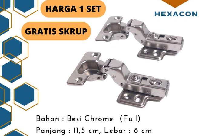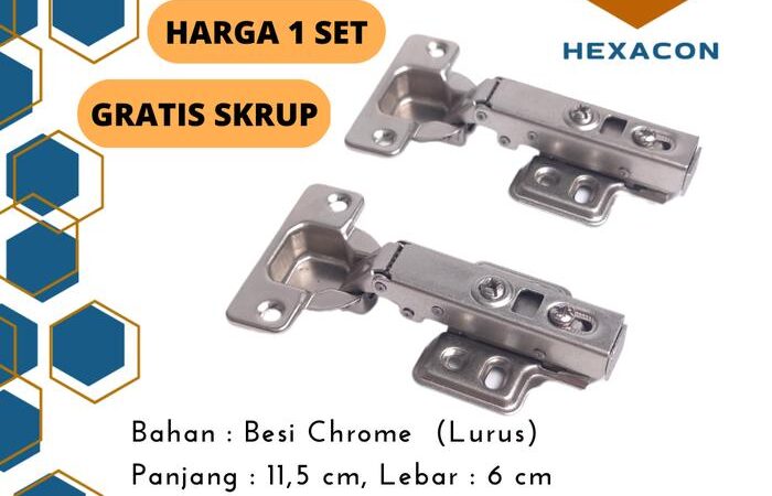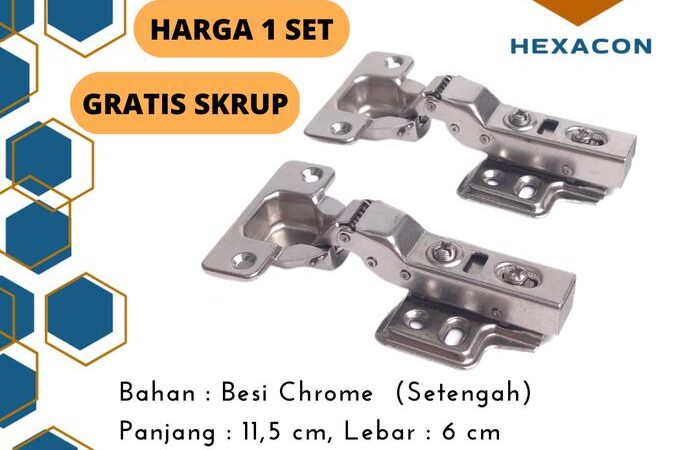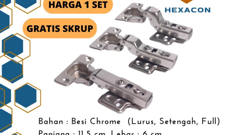 - Isi Paket: 1 Set (2 buah engsel) + Sekrup