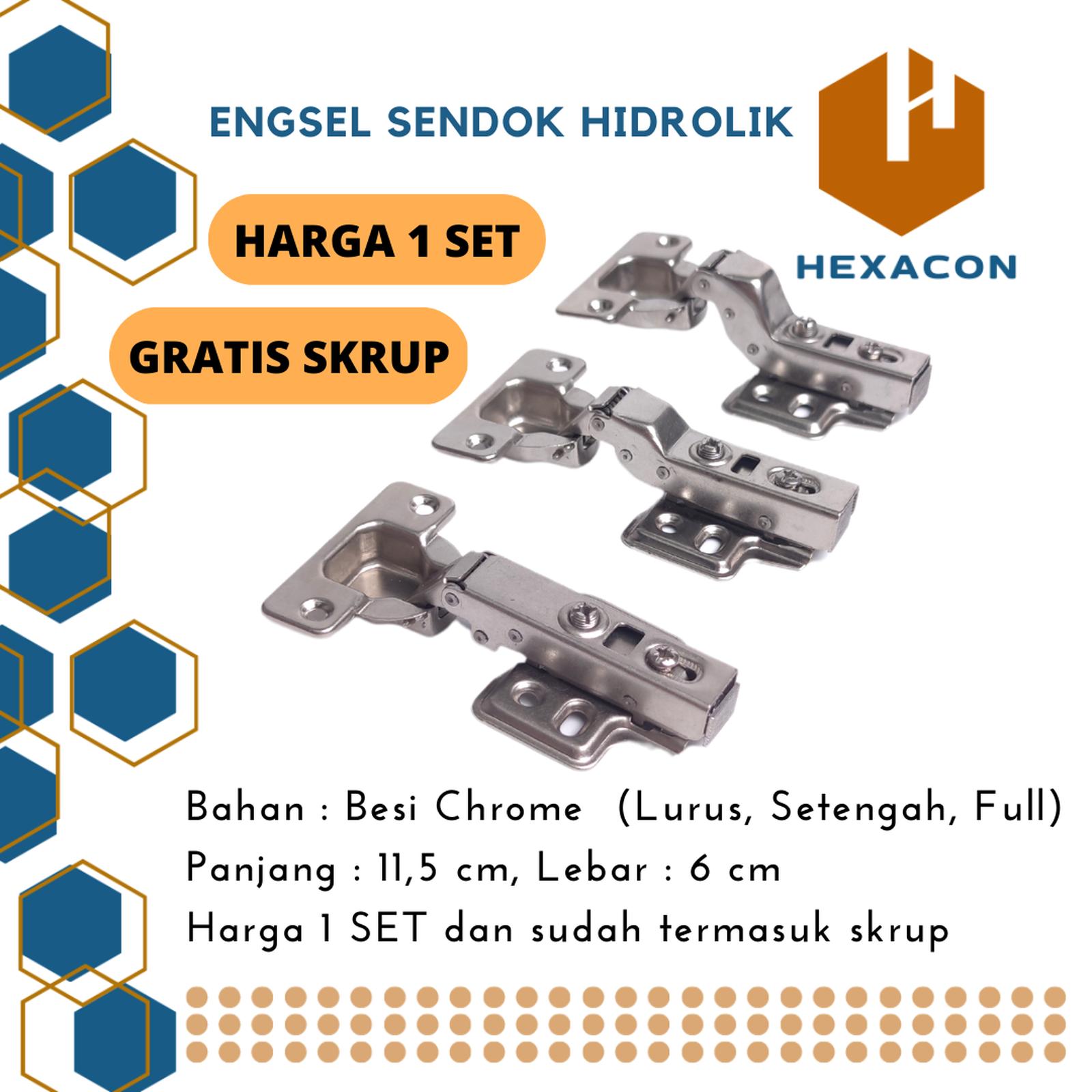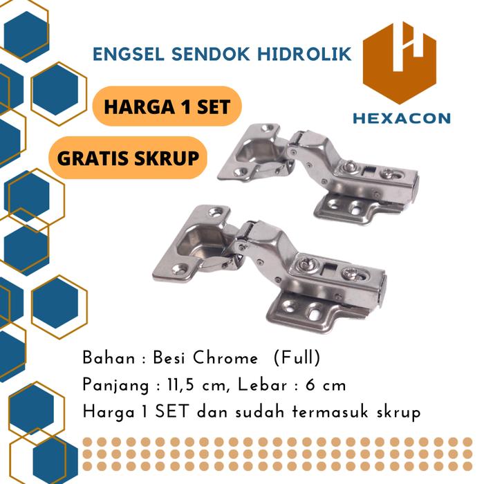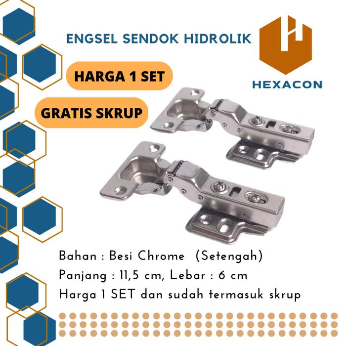 - Isi Paket: 1 Set (2 buah engsel) + Sekrup