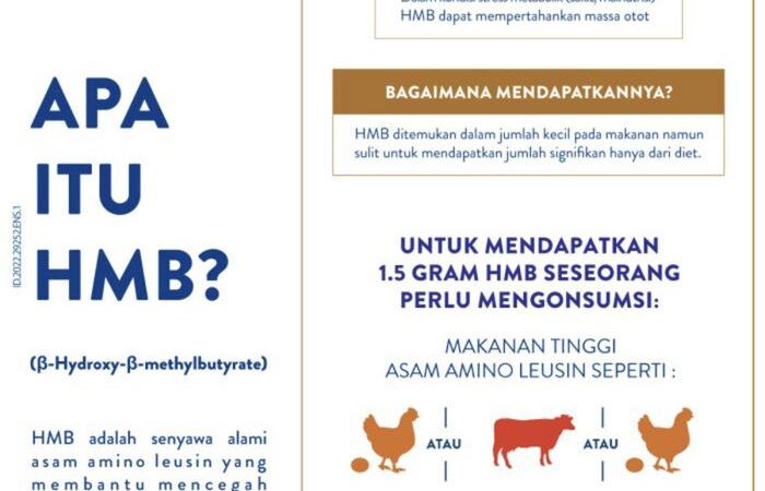 - HMB (Hydroxymethylbutyrate): Senyawa yang dihasilkan secara alami oleh tubuh saat memecah leusin (asam amino esensial). Berperan penting dalam sintesis protein dan membantu memperlambat kerusakan otot, terutama penting untuk menjaga massa otot seiring bertambahnya usia.