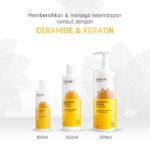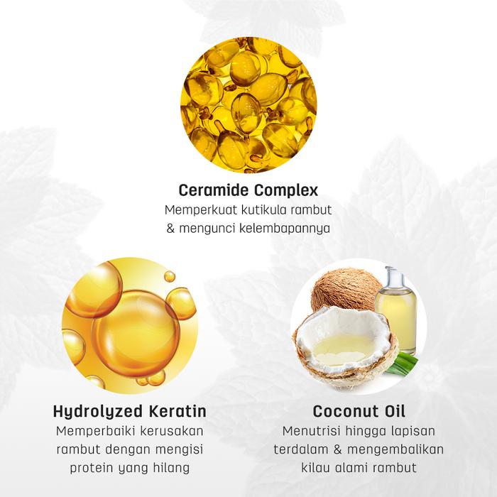 - Ceramide Complex: Mengunci kelembapan dan memperkuat batang rambut.