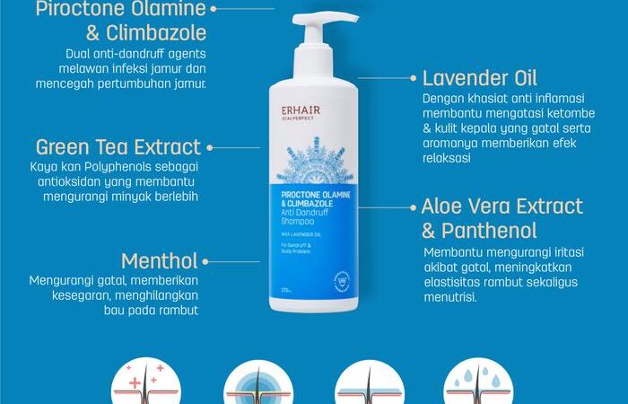 - Climbazole: Zat antijamur yang efektif membunuh mikroorganisme penyebab ketombe seperti Malassezia.