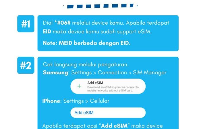 - Pastikan perangkat support eSIM: ketik *#06#. Jika muncul EID, perangkat Anda kompatibel.
