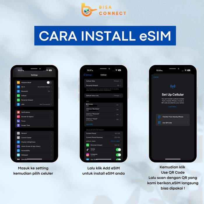 - eSIM hanya untuk internet, tidak bisa digunakan untuk telepon/SMS.