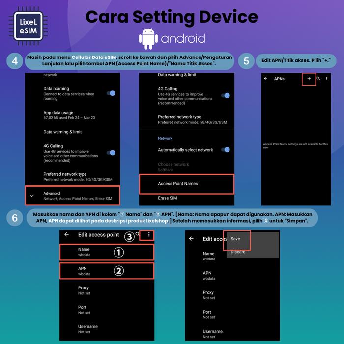 - Android: Pengaturan > Koneksi > Penggunaan Data