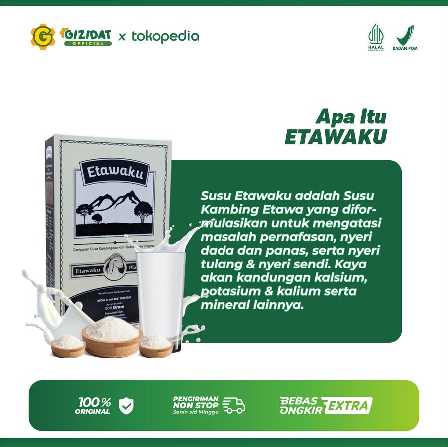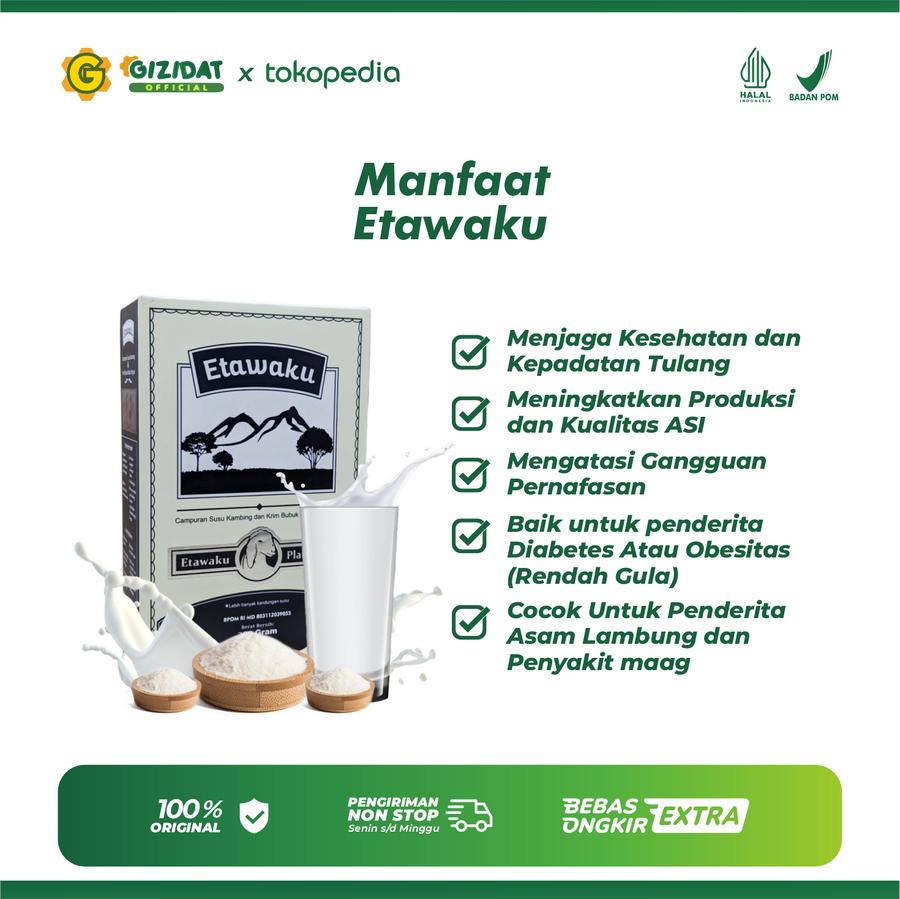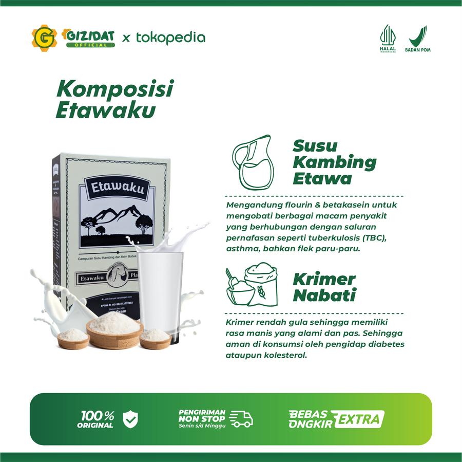 Susu Etawaku Platinum adalah susu kambing etawa bubuk berkualitas tinggi yang diproses secara higienis tanpa bahan kimia berbahaya. Dibuat dari susu kambing etawa murni dengan nutrisi lengkap untuk mendukung kesehatan optimal seluruh keluarga.