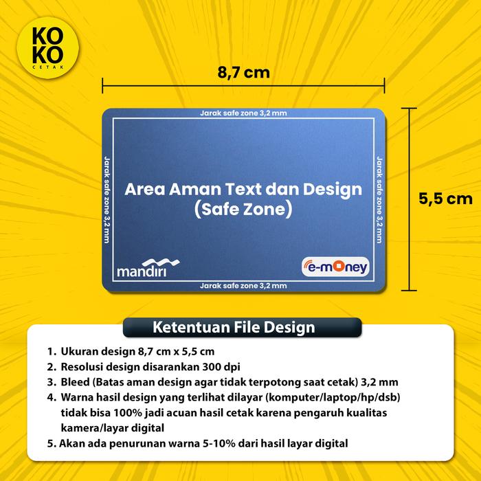 - Ukuran: 8.7 x 5.5 cm + bleed 0,32 cm, resolusi 300 DPI (jika tidak ada, kirim foto untuk kami edit).