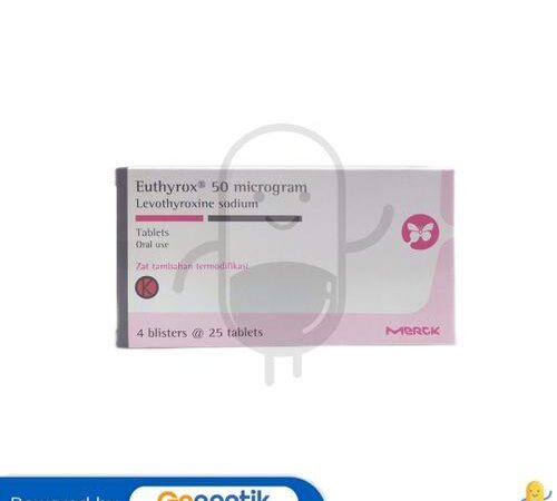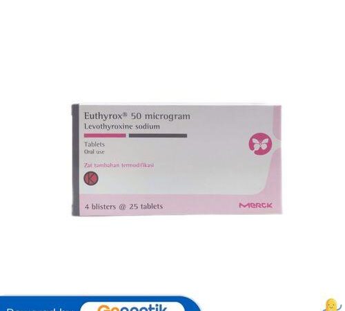 Euthyrox 50 Mcg adalah obat yang mengandung hormon tiroid levothyroxine untuk mengatasi kondisi hipotiroidisme. Obat ini bekerja menggantikan hormon tiroid yang tidak cukup diproduksi oleh kelenjar tiroid Anda, membantu mengembalikan keseimbangan energi, metabolisme, dan fungsi tubuh secara keseluruhan.