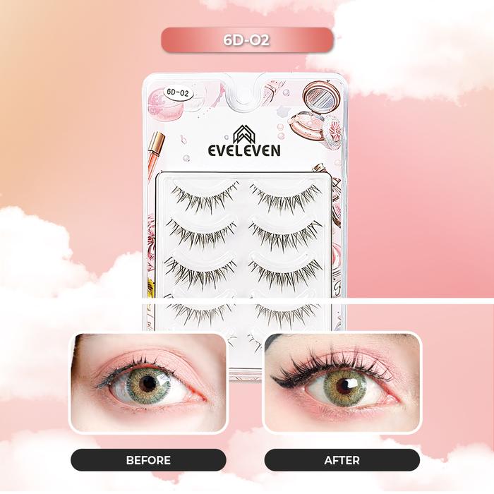 Tampil sempurna dengan bulu mata yang natural dan dramatis! Eveleven 6D-02 False Eyelashes 13mm didesain khusus untuk memberikan efek bulu mata tebal, lentik, dan penuh dimensi tanpa terkesan berlebihan. Cocok untuk tampilan sehari-hari maupun acara spesial.