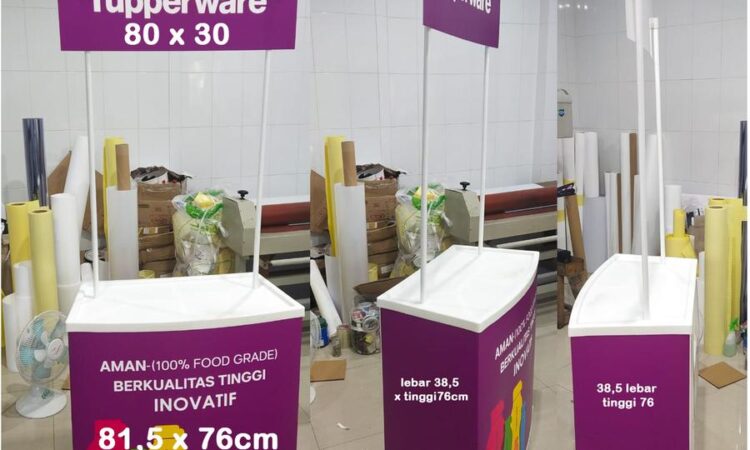 - Event Desk: Meja display portable berbahan PVC untuk pameran/promosi produk, mudah dibongkar-pasang.