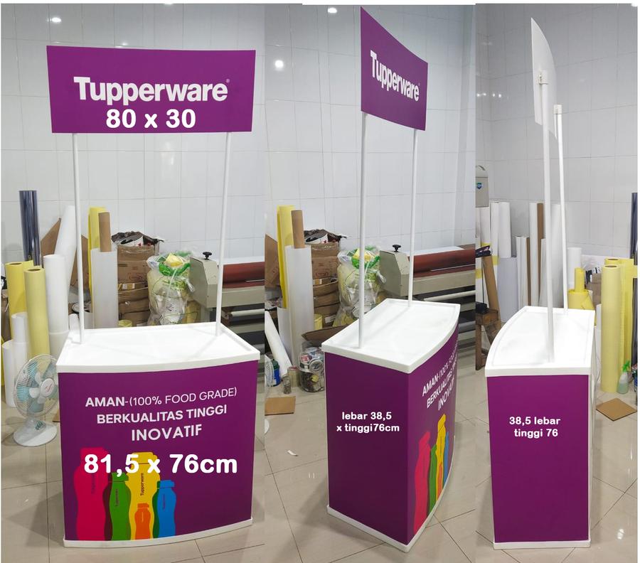 - Event Desk: Meja display portable berbahan PVC untuk pameran/promosi produk, mudah dibongkar-pasang.