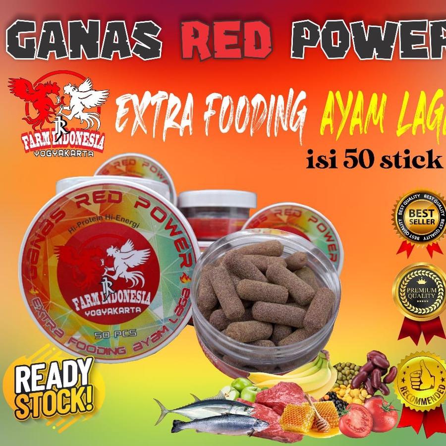 Suplemen multivitamin lengkap untuk meningkatkan kesehatan dan performa ayam kesayangan Anda! Tanpa repot menyiapkan makanan alami seperti tomat atau buah, Ganas Red Power sudah mengandung kombinasi optimal vitamin, serat, protein nabati/hewani, dan nutrisi esensial lainnya dalam bentuk praktis (50 stick).