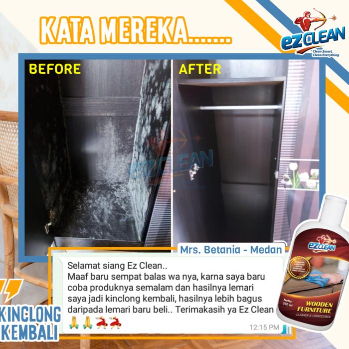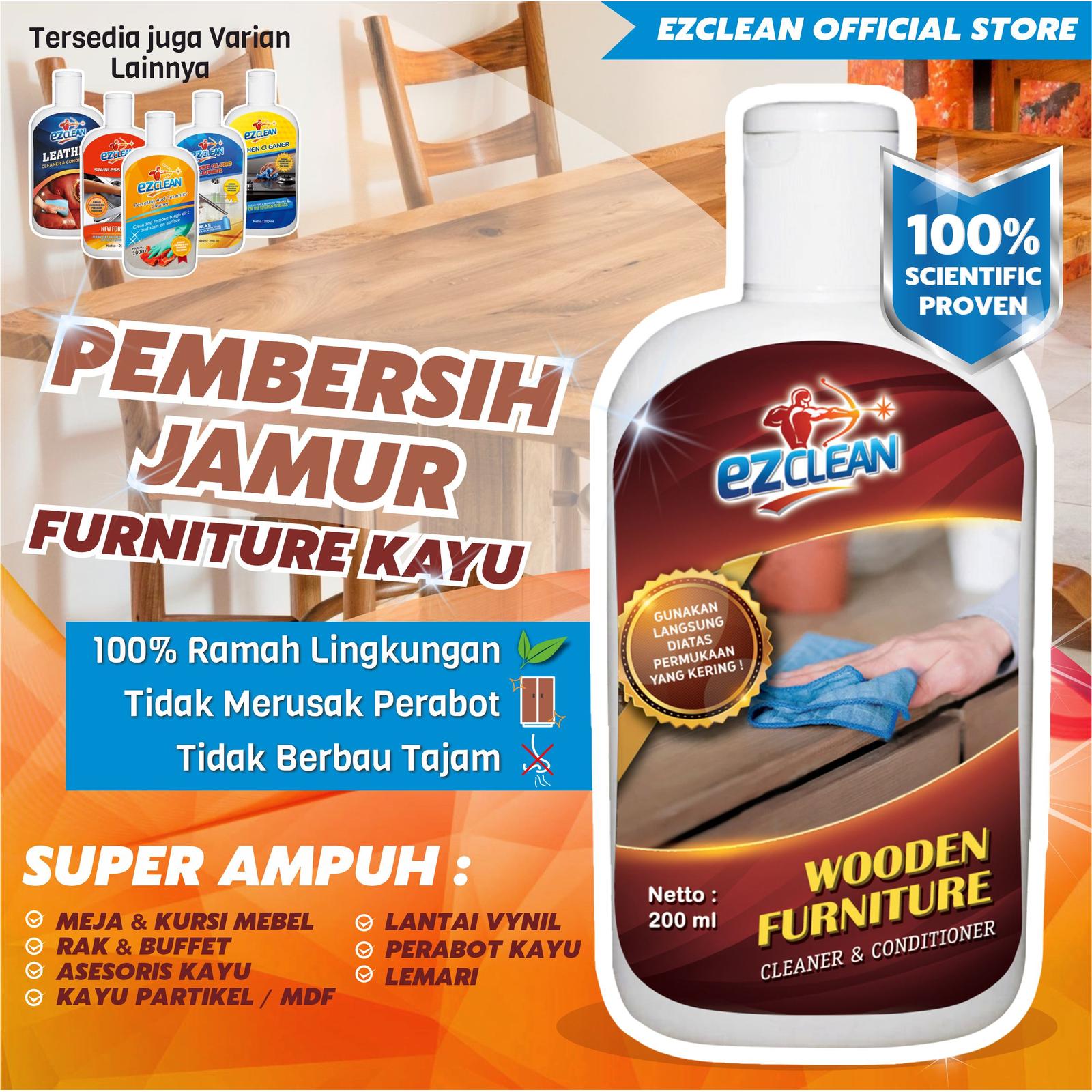 Tampilan perabot kayu yang kusam dan berjamur dapat merusak keindahan ruangan Anda. EZClean Wooden Furniture Cleaner & Conditioner hadir sebagai solusi super ampuh dan efektif untuk mengembalikan kilau alami furnitur kayu berplitur Anda. Formulanya yang khusus dirancang tidak hanya membersihkan noda dan jamur secara mendalam tetapi juga berfungsi sebagai pelembab (conditioner) untuk menjaga kelembapan kayu, mencegah retak, dan membuatnya tetap terlindungi.