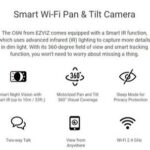 • Pan-Tilt: Kemampuan kamera untuk bergerak secara horizontal (pan) dan vertikal (tilt) yang dapat dikontrol dari jarak jauh melalui aplikasi, sehingga memberikan sudut pandang yang sangat luas tanpa harus menggeser fisik kamera.