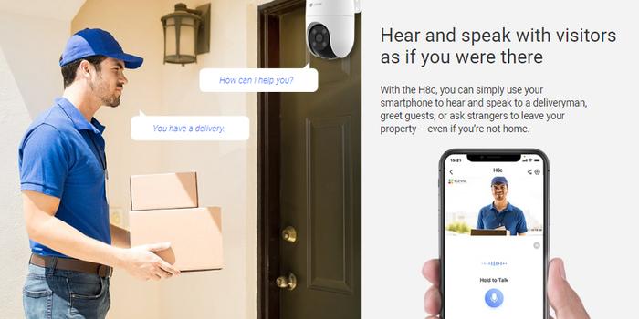 Dukungan konektivitas Wi-Fi memudahkan pemantauan dari mana saja secara real-time melalui aplikasi Ezviz di smartphone Anda. Nikmati juga fitur obrolan dua arah untuk berkomunikasi langsung dengan pengunjung.