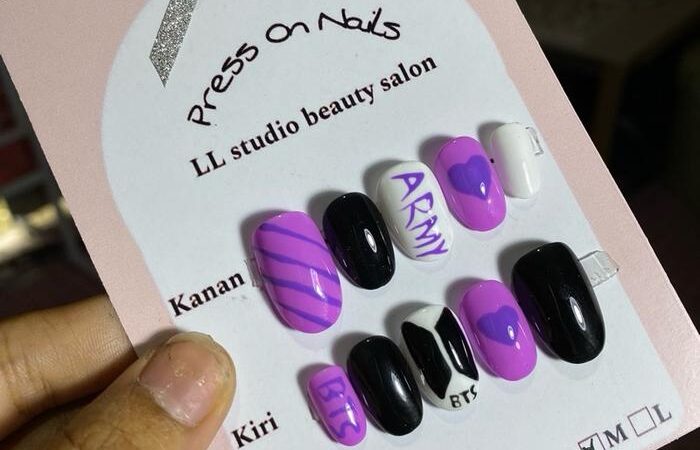 Dapatkan kuku palsu dengan desain BTS yang lucu dan stylish! Setiap pembelian sudah termasuk lem gel gratis agar pemasangan lebih mudah dan tahan lama. Nikmati juga layanan custom size dengan pilihan XS, S, M, dan L untuk menyesuaikan bentuk kuku Anda secara sempurna.