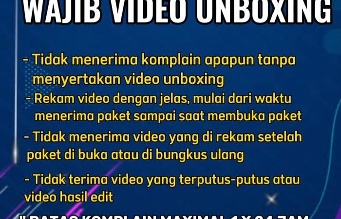 - Komplain untuk barang yang mudah pecah/rusak wajib disertai video unboxing sebagai bukti.