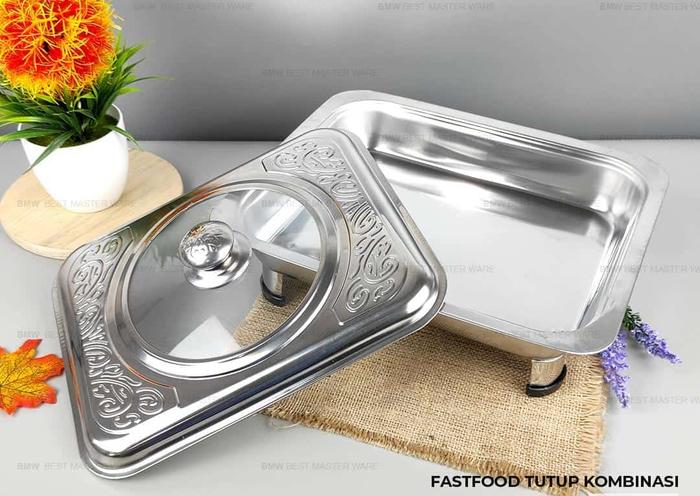 | Material Berkualitas: Terbuat dari stainless steel kokoh dan berkualitas. | Ukuran: Panjang ±35 cm, Lebar ±26.5 cm, Tinggi ±15 cm. |