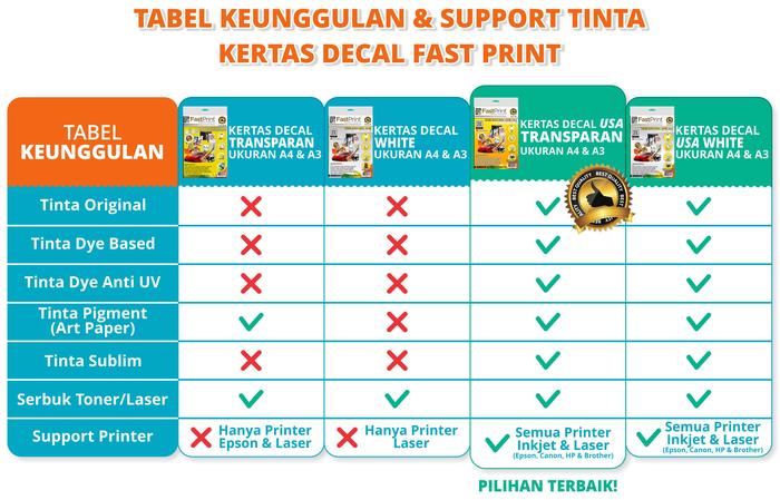 - Water Slide Decal: Kertas khusus yang dapat dicetak dan dipindahkan ke media lain dengan cara direndam air.