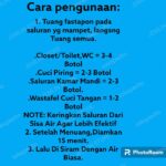 | Aman untuk pipa PVC/prilon | Closet/WC/Toilet: 3-4 botol |