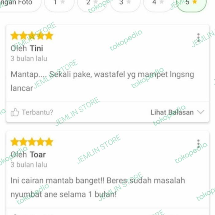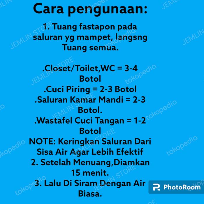 | Aman untuk pipa PVC/prilon | Closet/WC/Toilet: 3-4 botol |