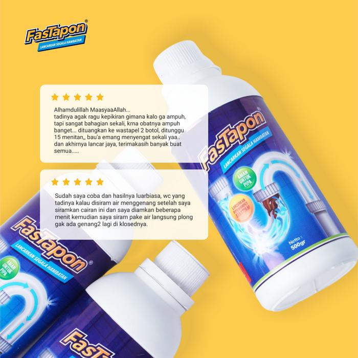 Habiskan masalah sumbat Anda dalam hitungan menit! FasTapon Anti Sumbat adalah formula kimia canggih yang bekerja cepat mengurai segala jenis sumbatan membandel.