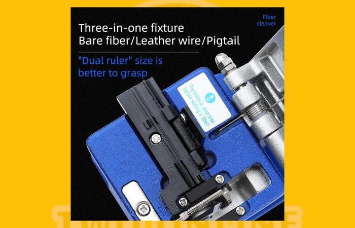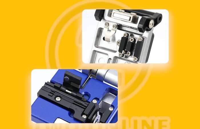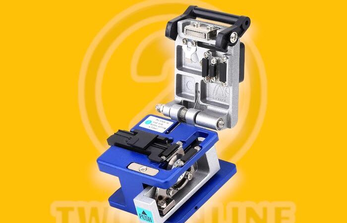 - Fiber Cleaver: Sebuah alat khusus dalam pekerjaan fiber optic yang berfungsi untuk memotong serat kaca (fiber) dengan sangat bersih, rata, dan tegak lurus (90°). Hasil potongan yang baik sangat krusial untuk menyambungkan dua serat dengan loss (kehilangan sinyal) yang minimal.