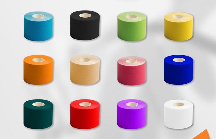 Kinesiology Tape: Pita elastis yang direkatkan pada kulit untuk memberikan dukungan pada otot dan sendi, mengurangi rasa sakit, meningkatkan performa, dan membantu proses pemulihan cedera tanpa membatasi rentang gerak.