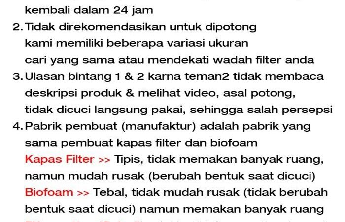 2. PENTING: Basahi produk terlebih dahulu dengan air sebelum dipasang untuk membuka dan mengaktifkan pori-porinya.