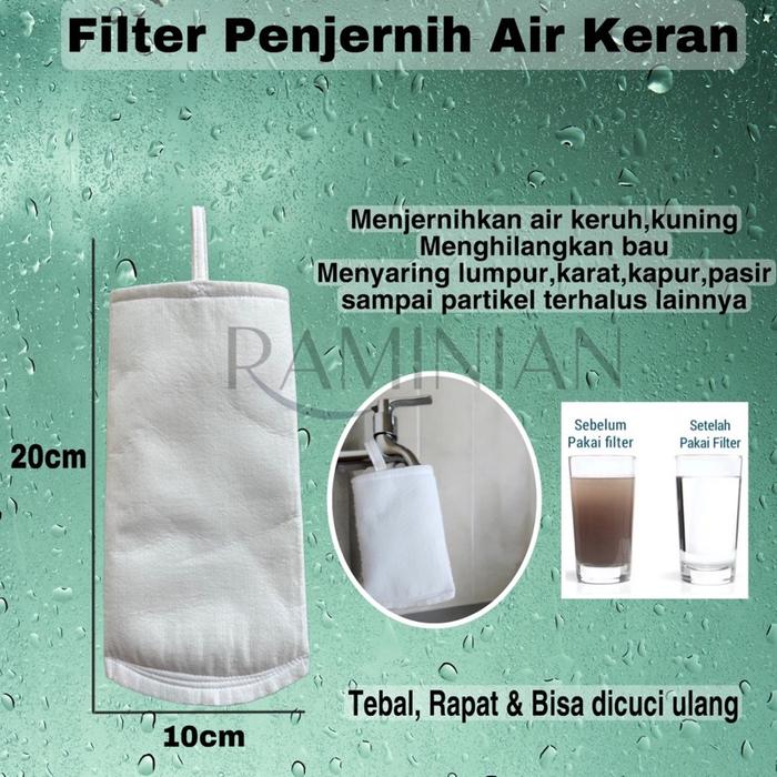 Rasakan kualitas air terbaik langsung dari keran Anda dengan Filter Keran kami. Dibuat khusus untuk menyaring air keruh, berbau, dan berkarat, memberikan Anda air yang lebih bersih dan aman untuk mencuci, mandi, serta kebutuhan sehari-hari. Dengan material kain tebal berkualitas tinggi, filter ini awet dan dapat dicuci berulang kali, sehingga lebih hemat dan ramah lingkungan.