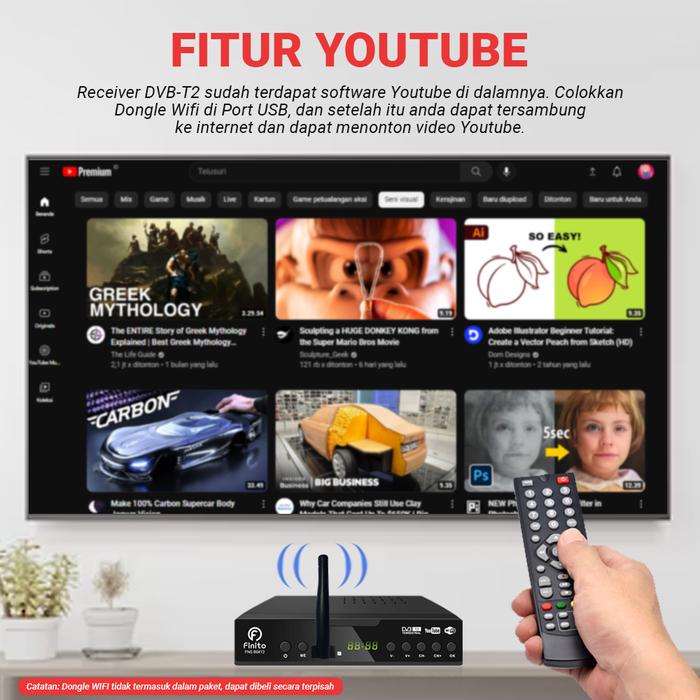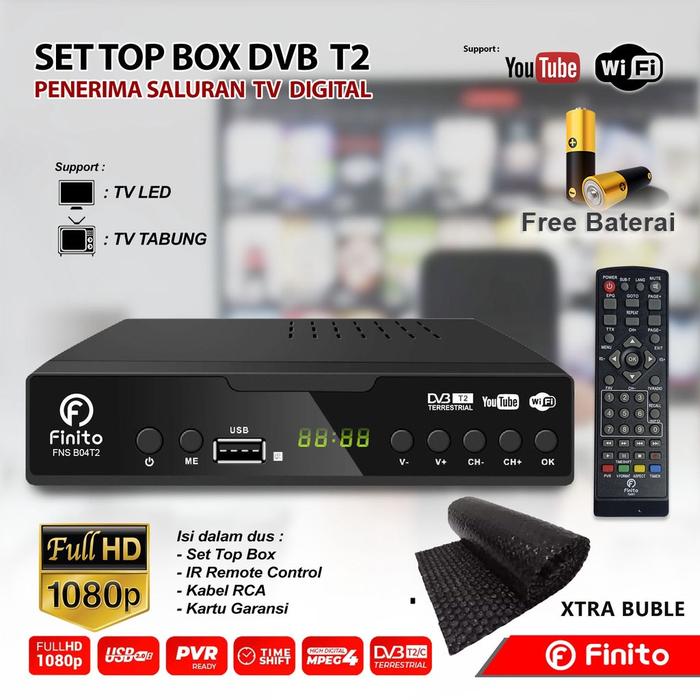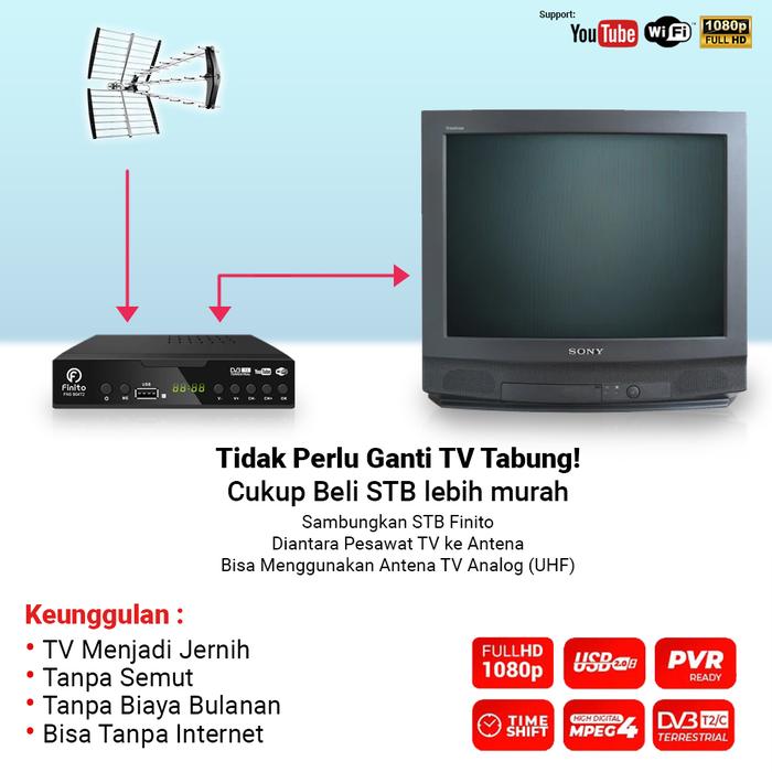 | Mendukung semua jenis TV (TV Tabung, LED, LCD, Proyektor) | 1 unit Set Top Box Finito |