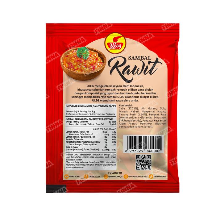 Rasakan ledakan rasa pedas yang autentik dan menggugah selera dengan Finna Sambal Uleg Rawit. Dibuat khusus dari cabai rawit pilihan yang diuleg secara tradisional, sambal ini menghadirkan cita rasa pedas, gurih, dan sedikit asam yang sempurna. Kualitas setiap bahan terjamin untuk memastikan kelezatan yang konsisten dalam setiap tetesnya.
