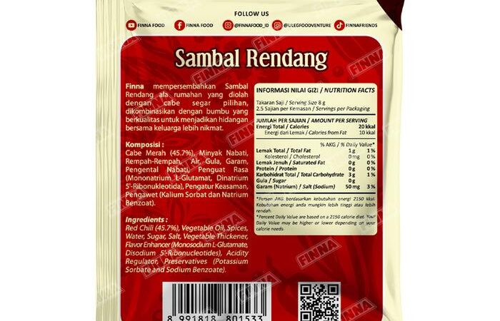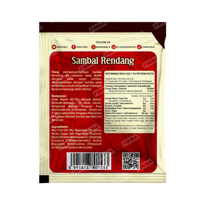 Hadirkan kelezatan sambal rendang autentik untuk melengkapi setiap santapan keluarga Anda. Finna Sambal Uleg Rendang diracik khusus dari cabe merah segar pilihan yang diuleg, dipadukan dengan udang dan rempah-rempah pilihan berkualitas tinggi. Cita rasanya yang kaya dan pedasnya pas menjadikan hidangan apa pun terasa lebih istimewa dan nikmat.