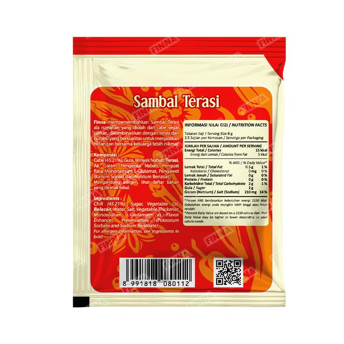 Nikmati kelezatan sambal terasi rumahan yang terbuat dari 100% cabe segar pilihan, dipadukan dengan terasi pilihan dan bumbu berkualitas tinggi. FINNA Sambal Uleg Terasi hadir untuk melengkapi dan menyempurnakan setiap hidangan keluarga Anda dengan cita rasa pedas, gurih, dan aroma terasi yang khas.