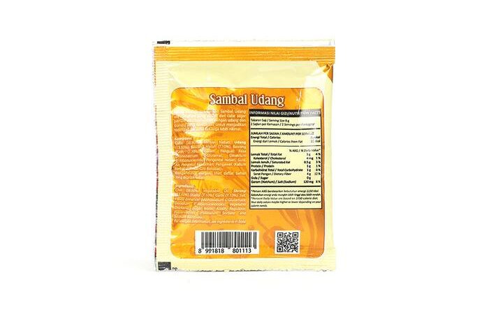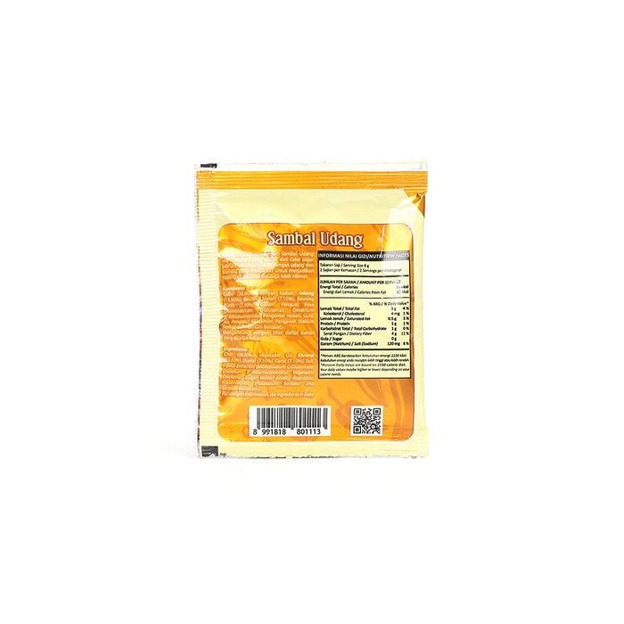| Komposisi Utama | Cabe (38.9%), Udang (13.5%), Minyak Nabati, Bawang Merah (7.1%), Bawang Putih (7.1%) |