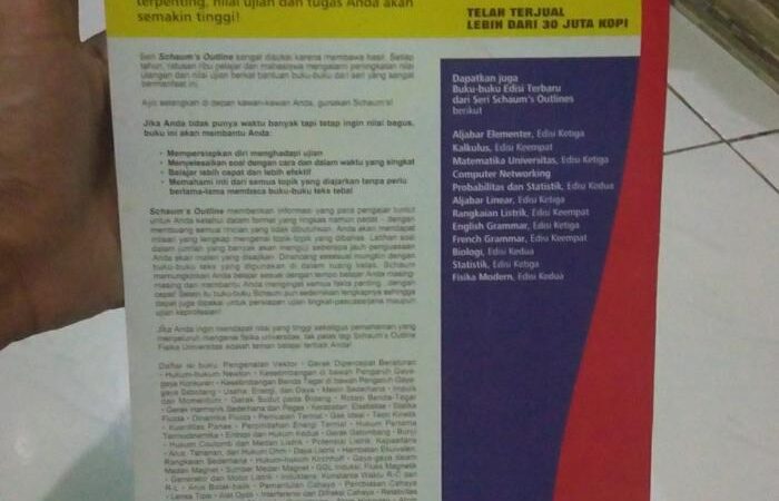 Buku ini merupakan alat bantu belajar yang sangat efektif, berisi ratusan soal latihan dengan penyelesaian langkah demi langkah. Sangat cocok untuk memahami konsep mekanika, termodinamika, elektromagnetik, dan optik. Dijamin original sesuai gambar. Segera pesan untuk melengkapi koleksi buku ajar Anda dan wujudkan kesuksesan akademik!