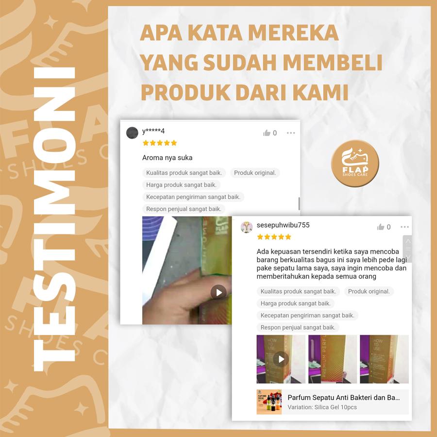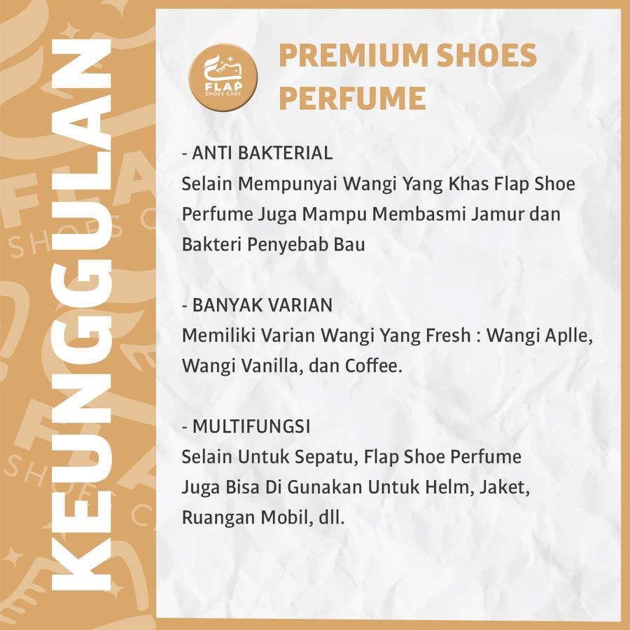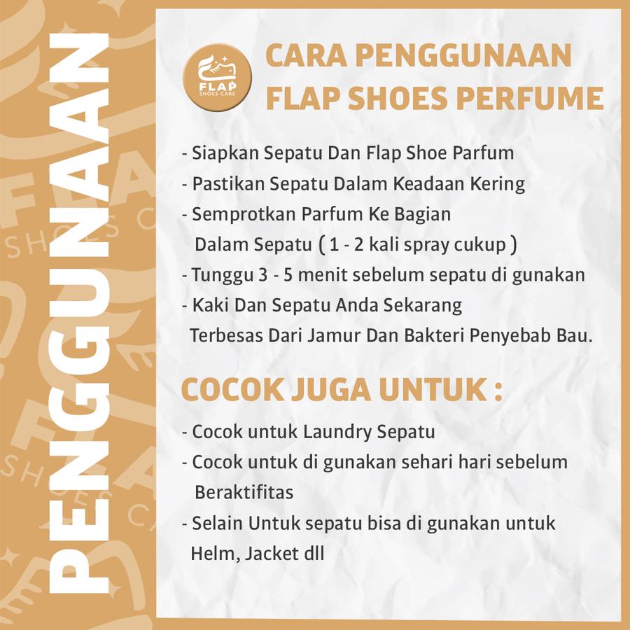 FLAP SHOES PERFUME adalah solusi praktis dan efektif untuk mengatasi bau sepatu sekaligus membunuh bakteri dan jamur. Dengan formulasi essensial oil dan antiseptic, produk ini tidak hanya memberikan aroma segar tahan lama tetapi juga menjaga kebersihan sepatu dari mikroorganisme penyebab bau. Cocok untuk aktivitas sehari-hari maupun perawatan laundry sepatu.