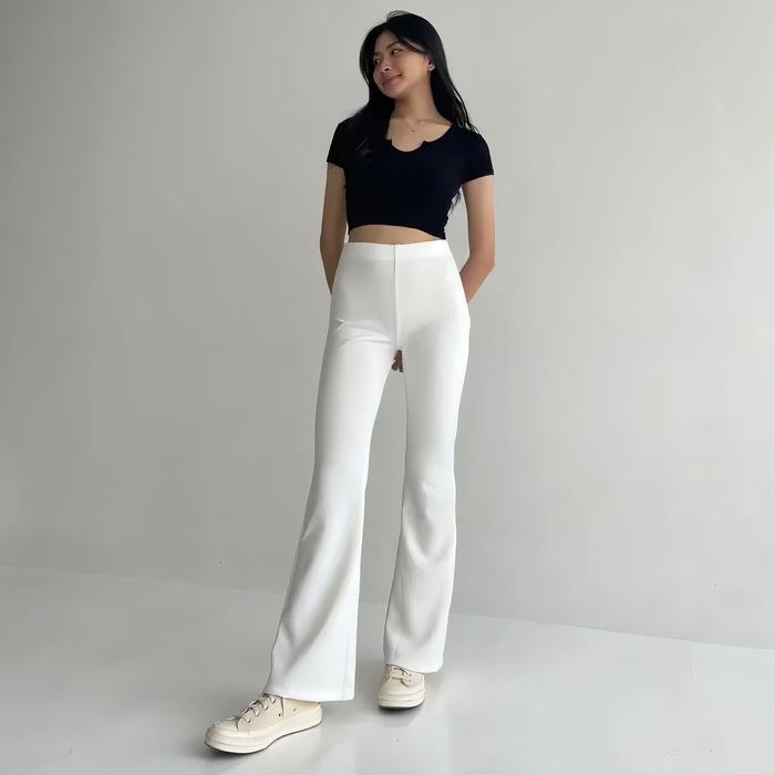 Tampil percaya diri dan stylish dengan Flare Pants terbaru kami! Dirancang khusus dengan desain highwaist yang membentuk siluet tubuh dan flare cutbray yang elegan mengikuti bentuk kaki. Terbuat dari bahan Scuba Premium tebal berkualitas tinggi yang sangat nyaman, jatuh sempurna, dan tidak mudah kusut. Dilengkapi dengan pinggang karet penuh yang memberikan kelonggaran maksimal dan kenyamanan sepanjang hari, cocok untuk berat badan 40 hingga 90 kg.