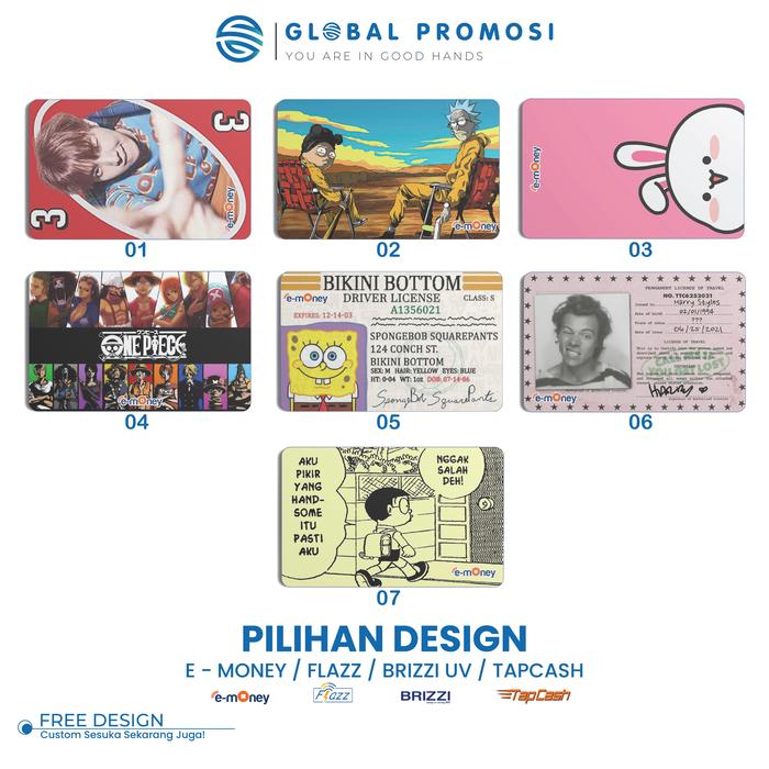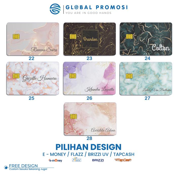 | Pilihan Cetak | 1 sisi (depan custom, belakang standar bank) atau 2 sisi (full custom). |