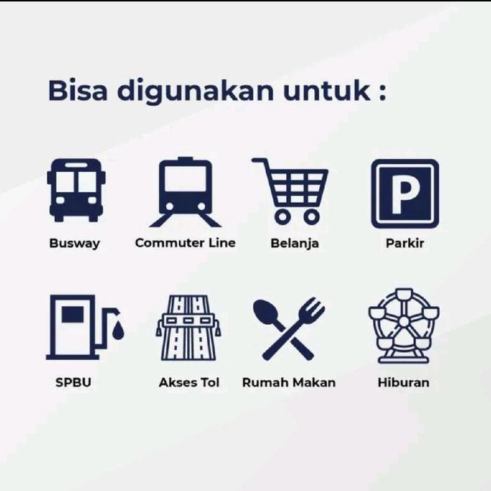 | Jangkauan Penggunaan | Tol, KRL, Busway, MRT, LRT, Jak Lingko, parkir, belanja, dan lainnya di seluruh Indonesia. |