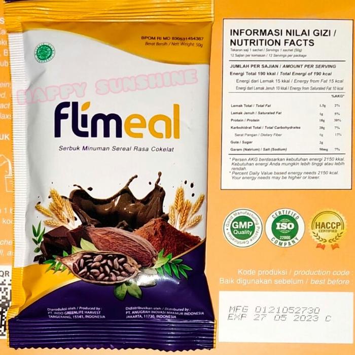 Dapatkan Flimeal, meal replacement sereal cereal sereal sachet yang dirancang khusus untuk mendukung program diet dan gaya hidup sehat Anda. Tersedia dalam pilihan rasa lezat: Coklat, Coklat Susu, Taro, Vanila, dan Strawberry.