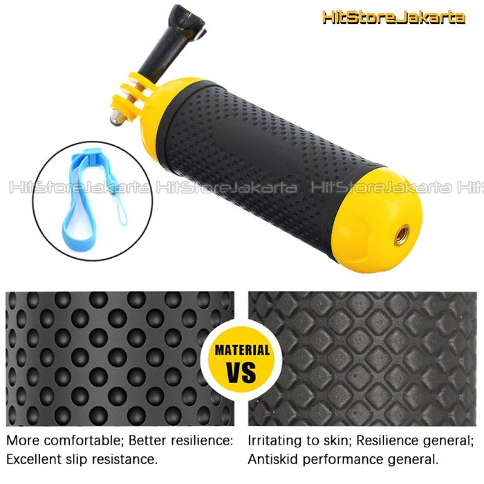 Jaminan MengapungDesain khusus menjamin grip tetap mengambang di permukaan air. Warna kuning mencolok memudahkan pencarian kamera jika terjatuh.