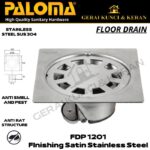 Tingkatkan estetika dan kebersihan kamar mandi Anda dengan Floor Drain Paloma. Dirancang dengan teknologi canggih untuk mengalirkan air lebih cepat (Quick Outflow) dan mencegah bau tidak sedap (Anti Odour) kembali ke ruangan. Desainnya yang ramping dan modern tersedia dalam dua pilihan warna yang stylish: silver stainless steel yang klasik atau hitam matte yang trendy. Material berkualitas tinggi menjamin produk awet dan tahan lama.