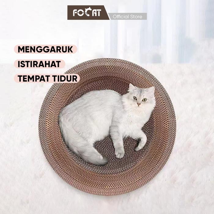 Hadirkan solusi sempurna untuk memenuhi naluri garuk anabul sekaligus memberinya tempat istirahat yang nyaman. Desainnya yang bulat dan cekung tidak hanya sebagai arena mencakar, tetapi juga menjadi tempat tidur favorit yang hangat. Dibuat dengan material kardus tebal dan padat berkualitas premium yang tahan lama, sehingga tidak mudah rusak meski sering digunakan. Cakar kucing pun terlindungi karena materialnya tidak melukai.