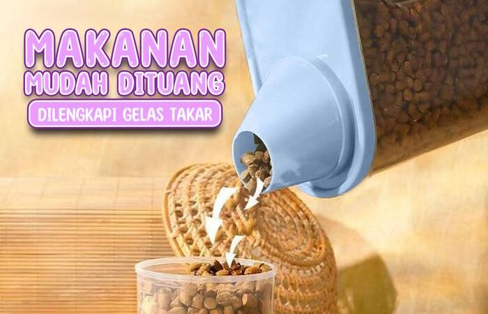 Dibuat dari material PP food grade yang aman dan berkualitas tinggi, toples ini menjamin keamanan pakan hewan peliharaan Anda. Desainnya yang transparan memudahkan Anda memantau jumlah stok makanan tanpa harus membuka tutupnya. Tutupnya yang kedap udara tidak hanya menjaga kesegaran, tetapi juga dapat dilepas dan difungsikan sebagai gelas takar yang praktis untuk memberikan porsi makan yang tepat.