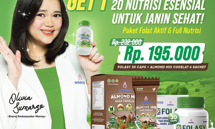 Dapatkan penawaran spesial Buy 1 Get 1 untuk pembelian Folasy Folat Aktif 30 kapsul dan Momsy Almond Mix Cokelat 6 sachet. Dukung setiap tahap kehamilan dengan nutrisi esensial yang lengkap dan penyerapan optimal.