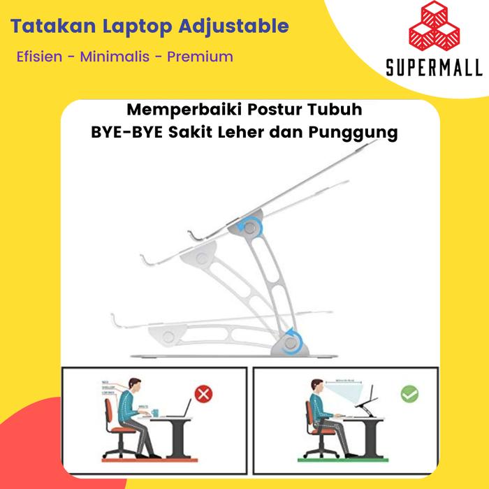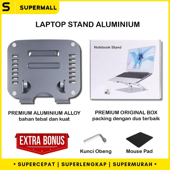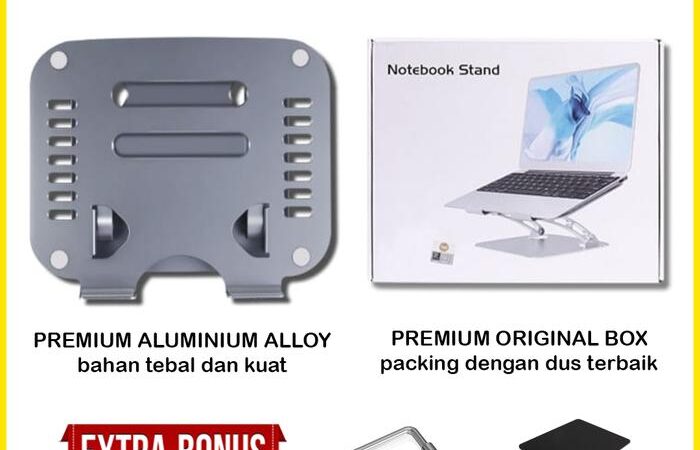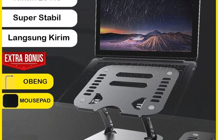 - Catatan: Hanya termasuk stand laptop + bonus mouse pad (laptop tidak disertakan).