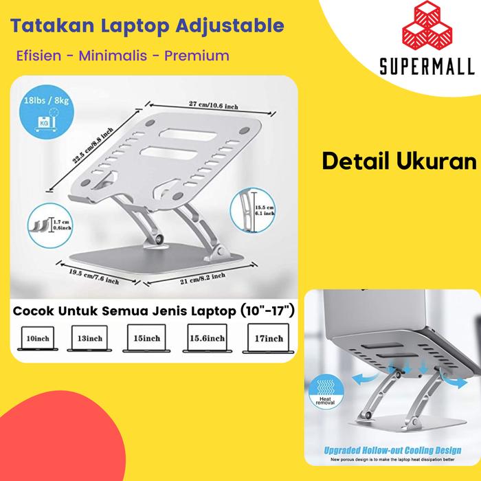 | 4 | Kapasitas Beban | Kuat menopang laptop hingga ukuran 17 inci. |