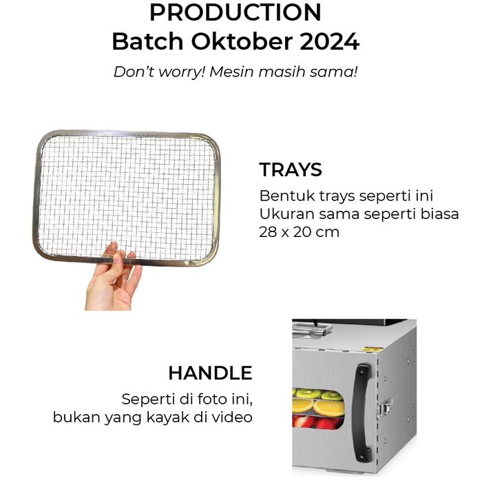 - Kapasitas besar dengan 6 tray, efisien untuk kebutuhan rumah tangga atau bisnis