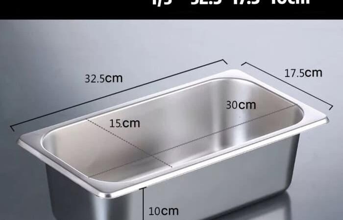 Food pan prasmanan stainless dengan ukuran 1/3 dan tinggi 10 cm ini dirancang untuk kebutuhan penyajian makanan yang higienis dan praktis. Terbuat dari material stainless steel 201 berkualitas SGS food grade, food pan ini dilengkapi teknologi ANTI-JAM yang membuatnya aman ditumpuk tanpa risiko karat atau masalah kebersihan. Cocok untuk restoran, rumah makan, atau kebutuhan komersial seperti penyimpanan topping kue dan es krim.