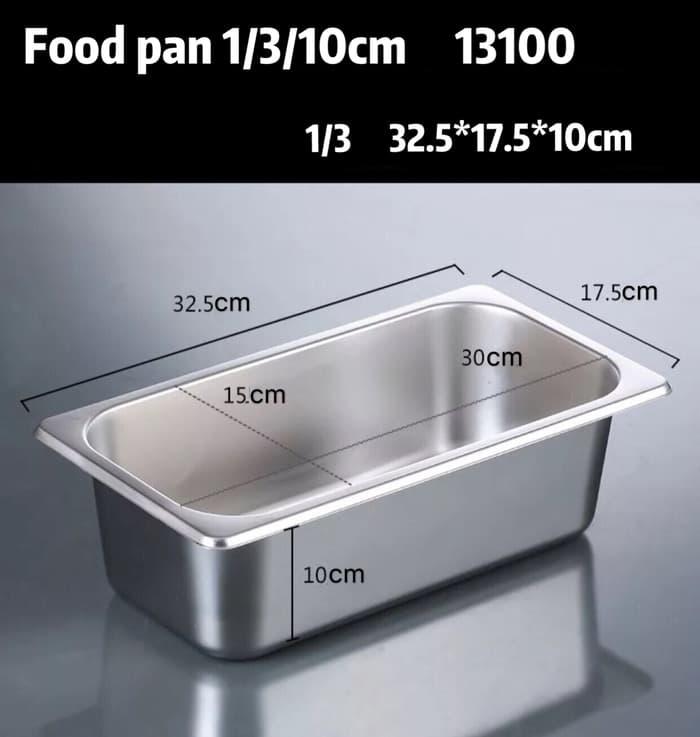 Food pan prasmanan stainless dengan ukuran 1/3 dan tinggi 10 cm ini dirancang untuk kebutuhan penyajian makanan yang higienis dan praktis. Terbuat dari material stainless steel 201 berkualitas SGS food grade, food pan ini dilengkapi teknologi ANTI-JAM yang membuatnya aman ditumpuk tanpa risiko karat atau masalah kebersihan. Cocok untuk restoran, rumah makan, atau kebutuhan komersial seperti penyimpanan topping kue dan es krim.